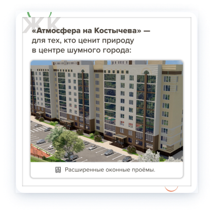 При помощи контента передавать атмосферу ЖК, вызывать у людей доверие и желание жить в домах от застройщика «Атмосфера».