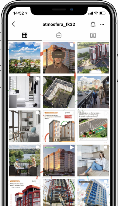 Застройщик «Атмосфера» занимается проектированием и возведением новых жилых комплексов, гражданских и общественных зданий в Брянске. Всего 23 успешно завершенных проекта по строительству жилых комплексов в разных районах города.Застройщик обратился к нам с задачей выстроить образ компании в медиапространстве и сделать соцсети активным каналом лидогенерации